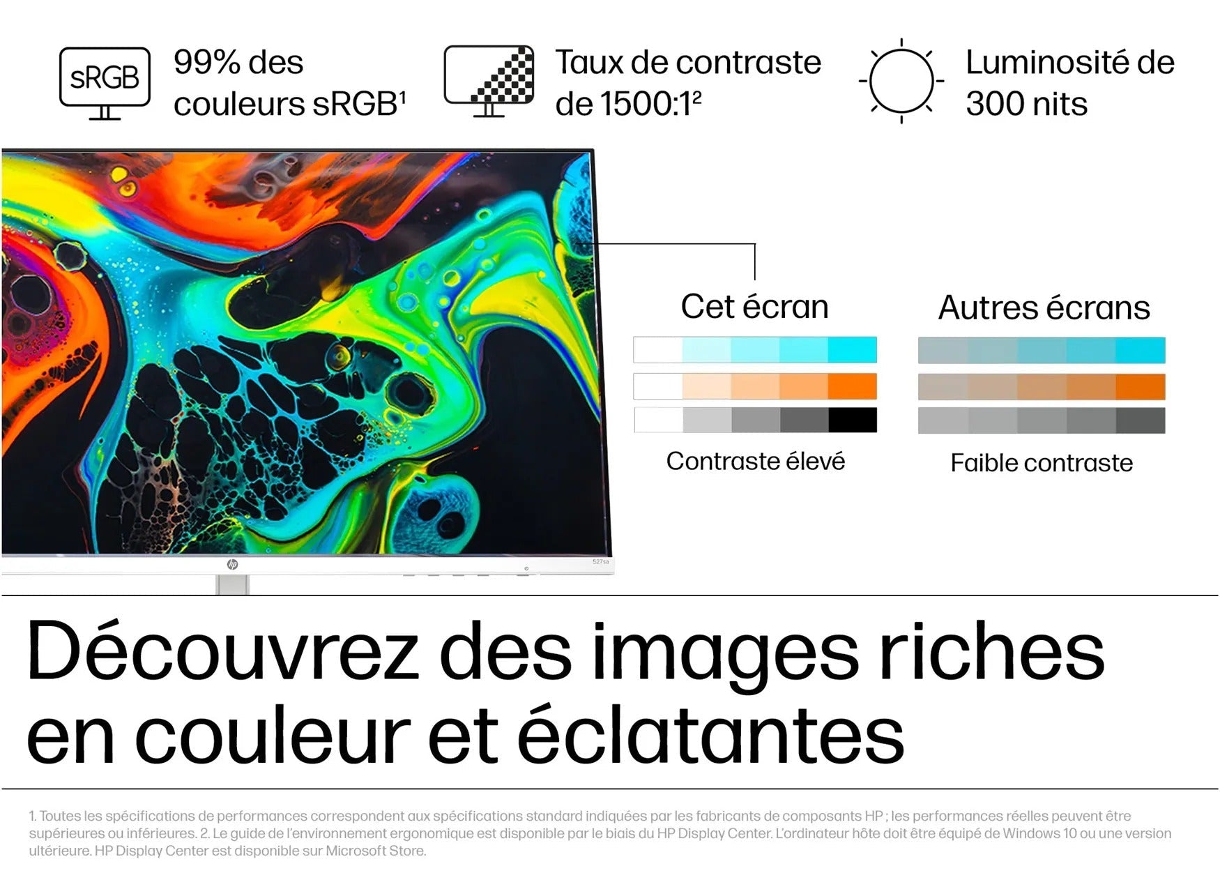 Le HP 27" 527sa est un excellent choix pour tous ceux qui veulent un grand écran simple à configurer et efficace au quotidien. Que ce soit pour le télétravail, l'étude ou le divertissement, il offre qualité et confort sans accessoires externes.