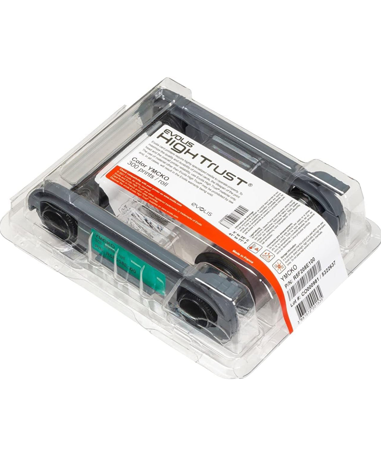 Ruban monochrome pour impression de cartes identifiables Evolis, garantissant qualité et productivité.