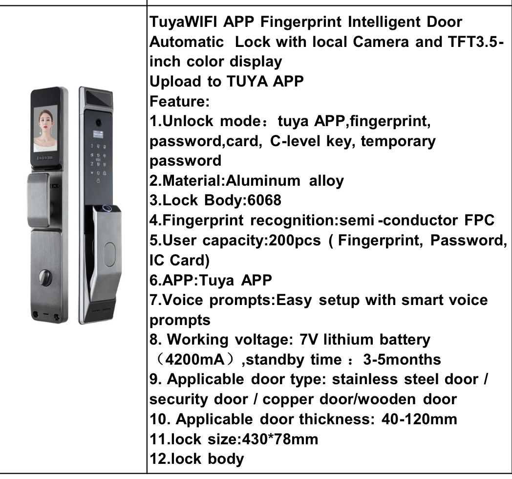 - Sécurité maximale : Reconnaissance faciale 3D, empreintes digitales, mot de passe, carte IC, application et clé pour une protection optimale.