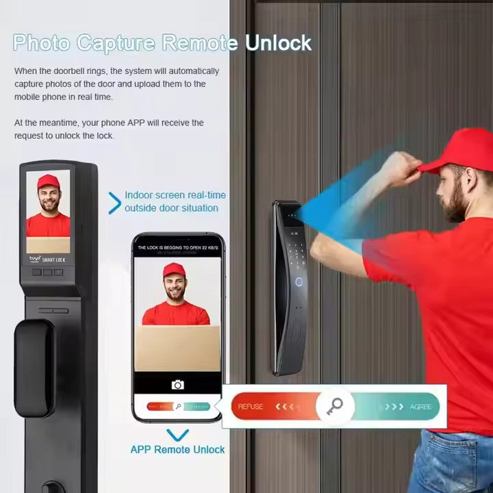 Serrure Intelligente Tuya avec Visiophone - Reconnaissance faciale, empreinte digitale, code et clé