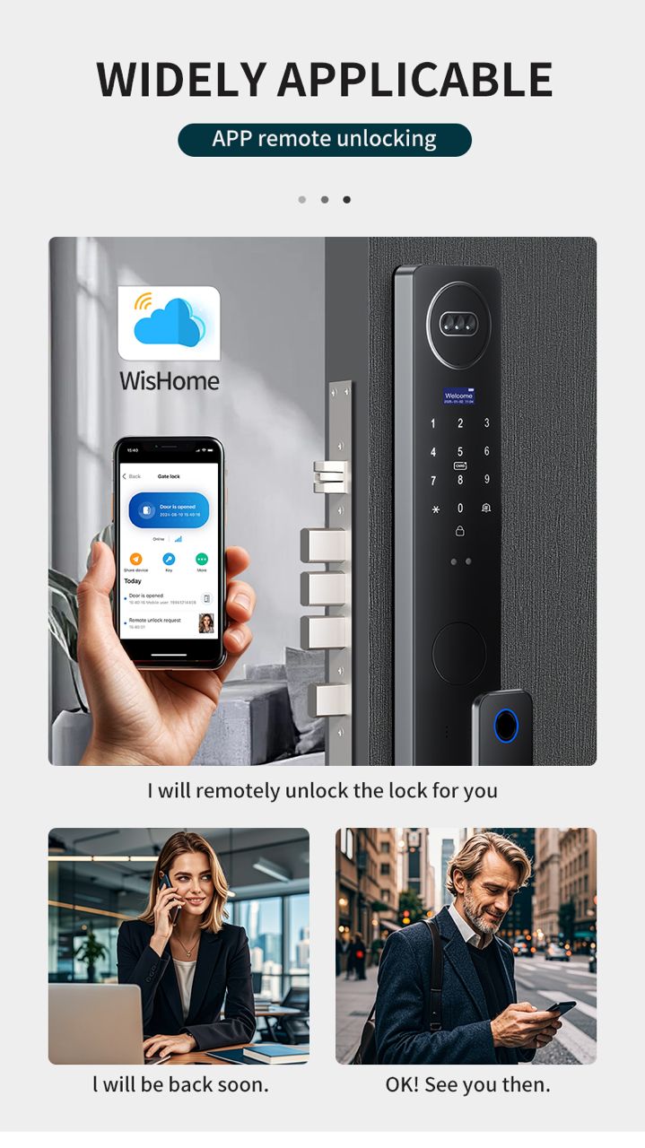 Modernisez votre système de sécurité avec la serrure intelligente Wishome. Cette serrure d'entrée connectée offre un accès sécurisé et pratique grâce à la technologie d'empreintes digitales, aux codes d'accès, aux cartes RFID et à la gestion via application mobile. Simplifiez votre quotidien tout en renforçant la protection de votre domicile.