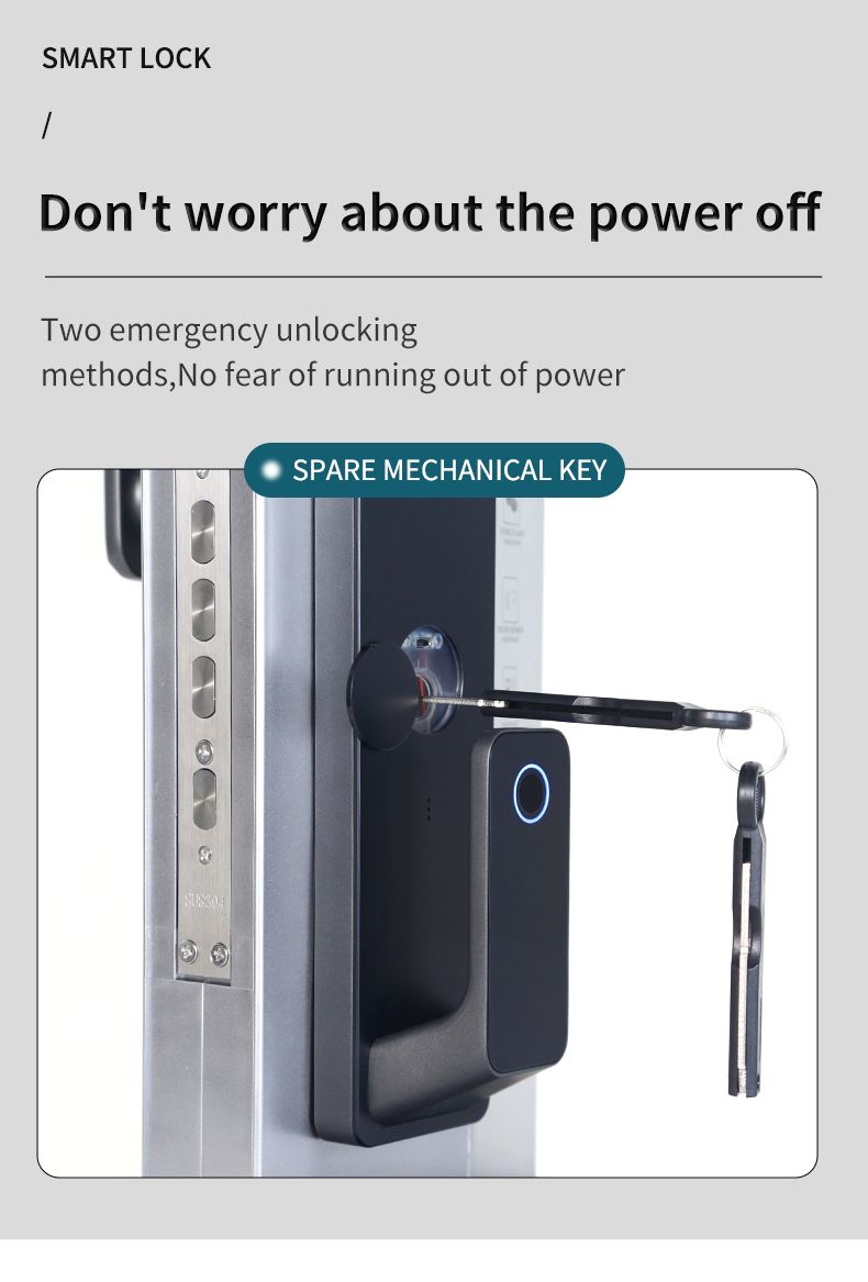 - Méthodes d'ouverture : Empreinte digitale, code d'accès, carte RFID, application mobile, clé mécanique (en cas d'urgence)