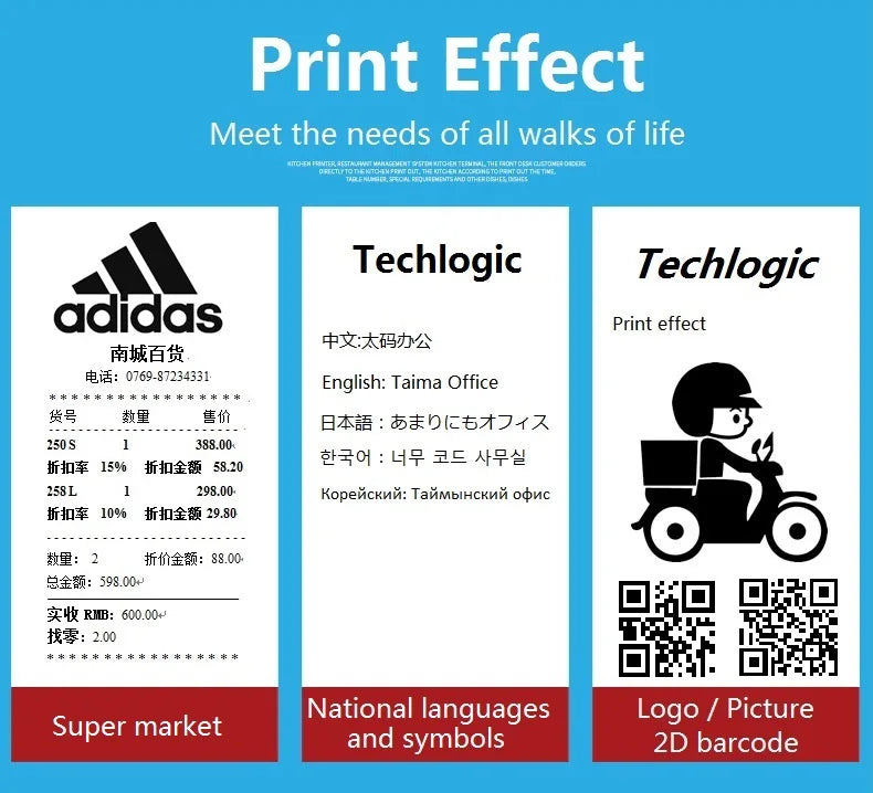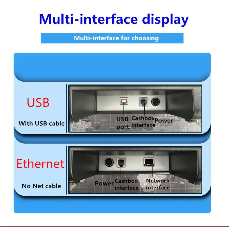 Imprimante ticket thermique 80mm WIFI avec coupeur automatique. Port USB, Ethernet. Compatible Windows, Mac & Linux. Idéale pour POS caisse, restaurant, magasin. Impression rapide 160mm/s, fiable & économique.